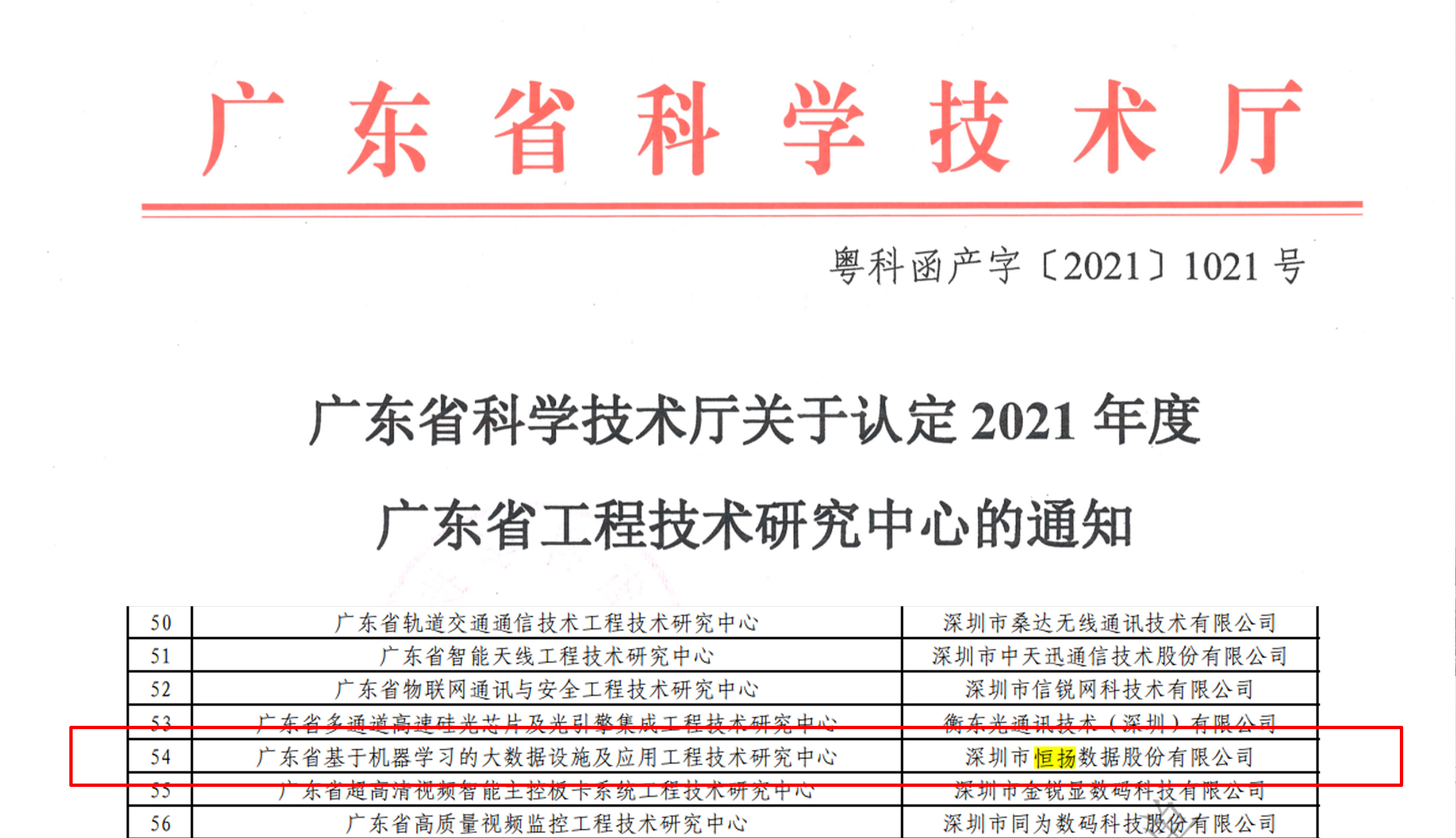 返回列表近日,廣東省科學技術廳發(fā)布關于認定2021年度廣東省工程技術研究中心名單的通知,恒揚數(shù)據(jù)通過層層篩選,正式認定成為“廣東省基于機器學習的大數(shù)據(jù)設施及應用工程技術研究中心”。對恒揚而言,這是繼成為深圳市大數(shù)據(jù)實驗室之后再次獲得省市級認證,這即是對恒揚技術團隊的一種認可,同時也是一種鞭策,將進一步激發(fā)公司自主創(chuàng)新活力,大力推進技術創(chuàng)新及應用成果的研發(fā)轉化。